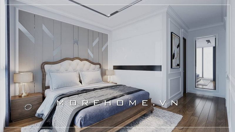 Mẫu giường ngủ với đường cong tân cổ điển, đầu giường bọc da sang trọng cho phòng ngủ
