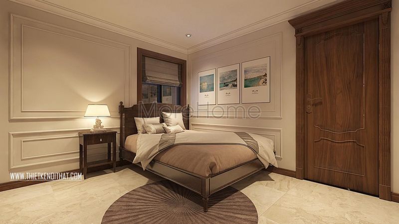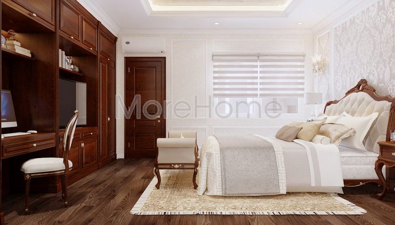Giường ngủ biệt thự tân cổ điển cao cấp, từng đường nét chạm khắc tỉ mỉ, tinh tế cùng gam màu nâu trầm của gỗ óc chó tạo nên một không gian nghỉ ngơi sang trọng và đẳng cấp nhất