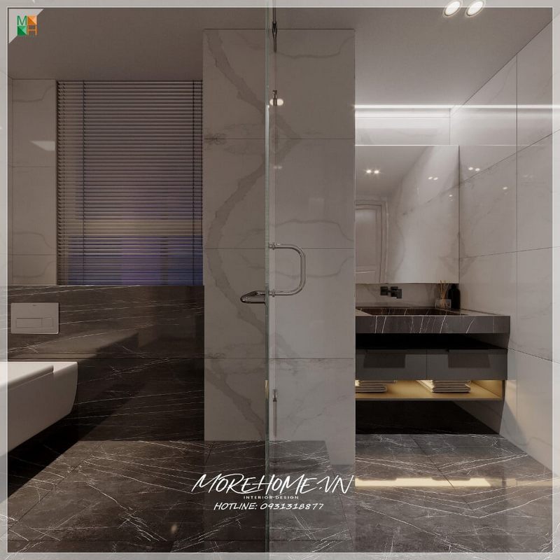 Thi công phòng tắm nội thất sắp xếp phân chia hợp lí thuận tiện và thẩm mỹ cho sử dung của gia chủ